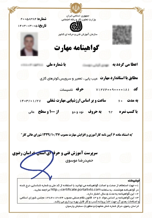 در پایان دوره و پس از قبولی در آزمونهای فنی و حرفهای گواهینامه معتبر آموزش تعمیرات کولرگازی فنی و حرفهای را دریافت خواهید کرد که قابل ترجمه رسمی و بین المللی است.